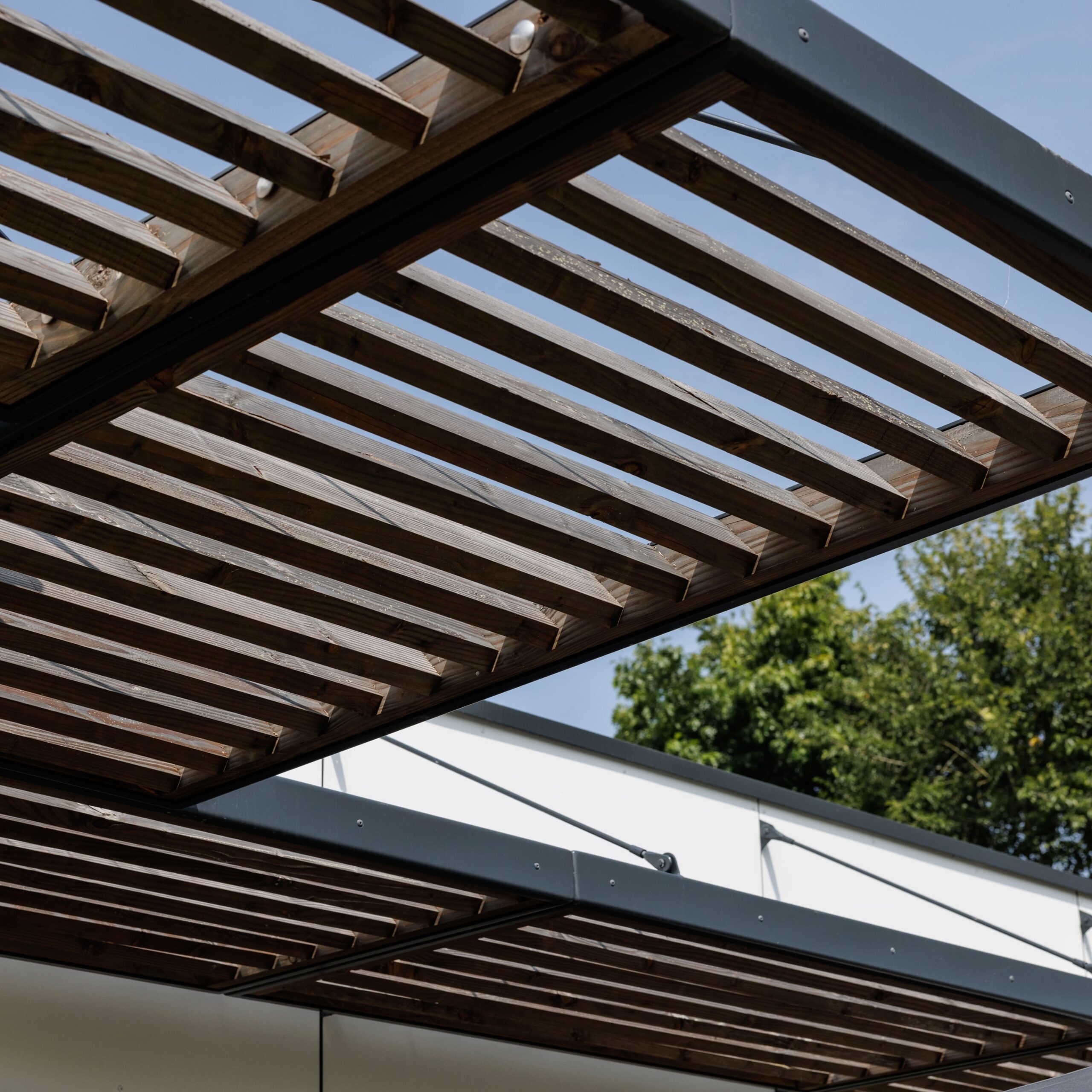 Sur ce projet, les volets roulant sont été remplacés par des brises soleil à lames orientables (BSO) pour un confort thermique optimisé en période de chaleur.