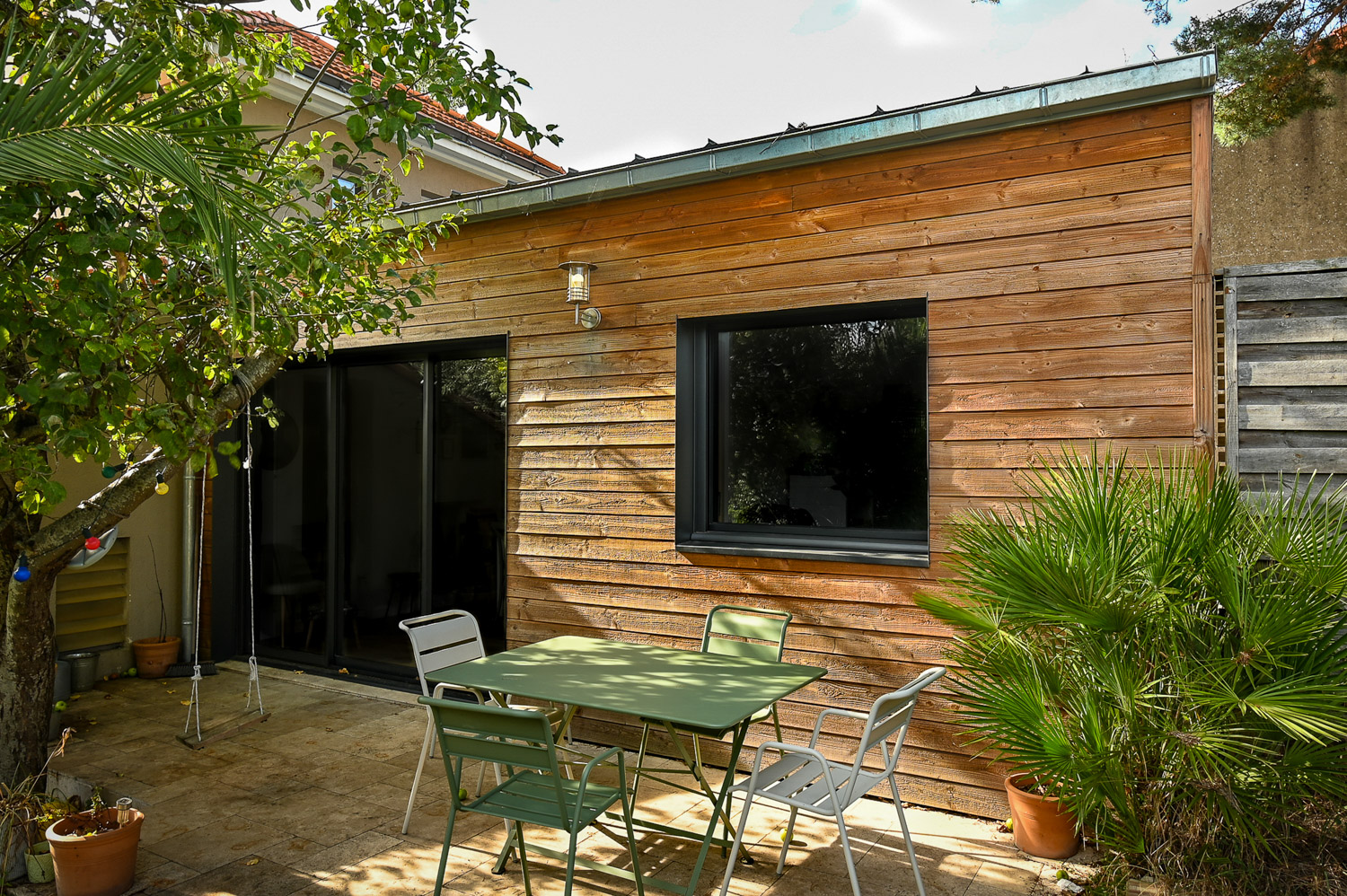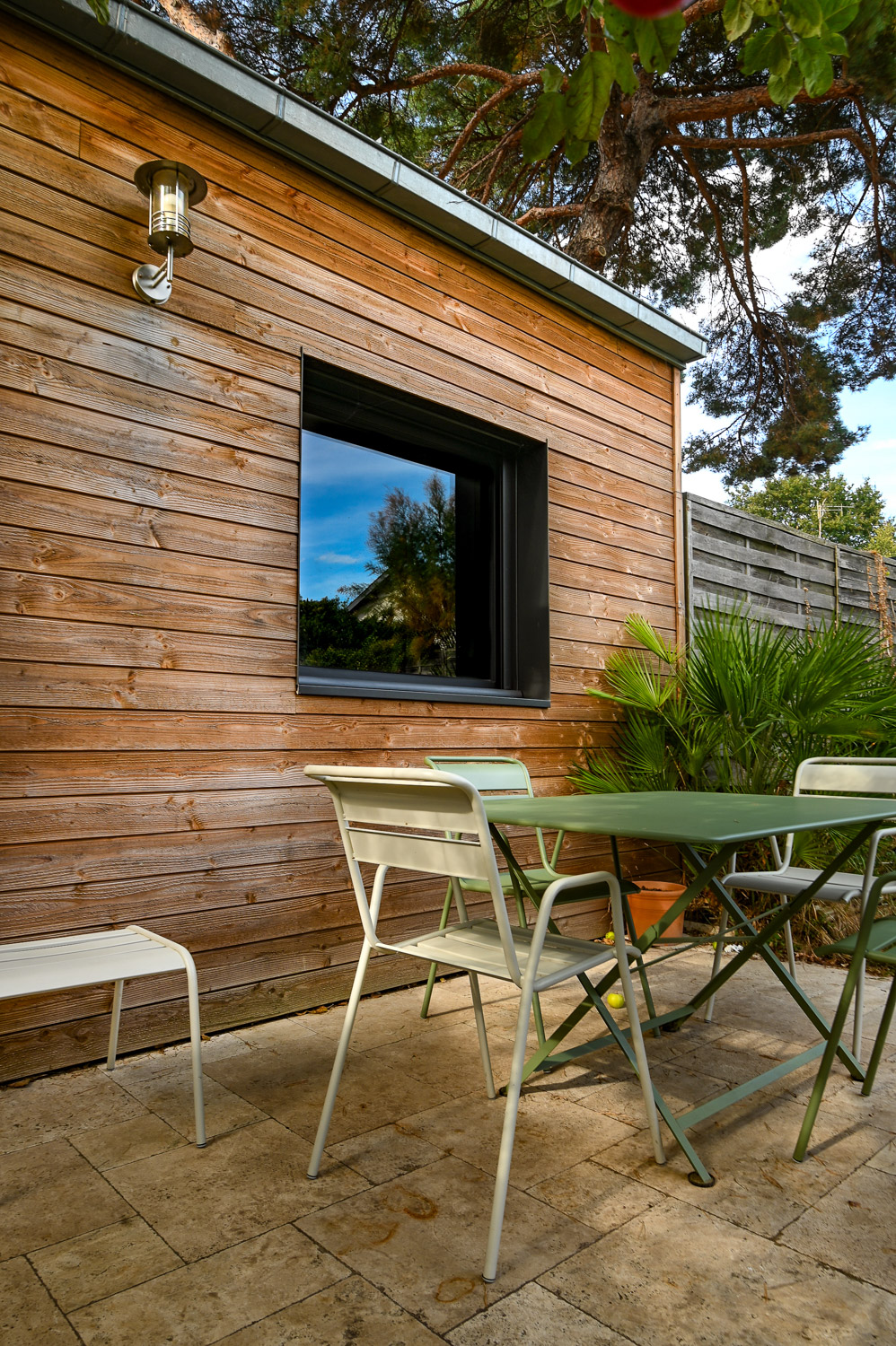 Véritable studio de jardin, notre client souhaitait créer un espace type cabane de jardin. Le client est ravi et ses locataires profitent de cet espace nature.